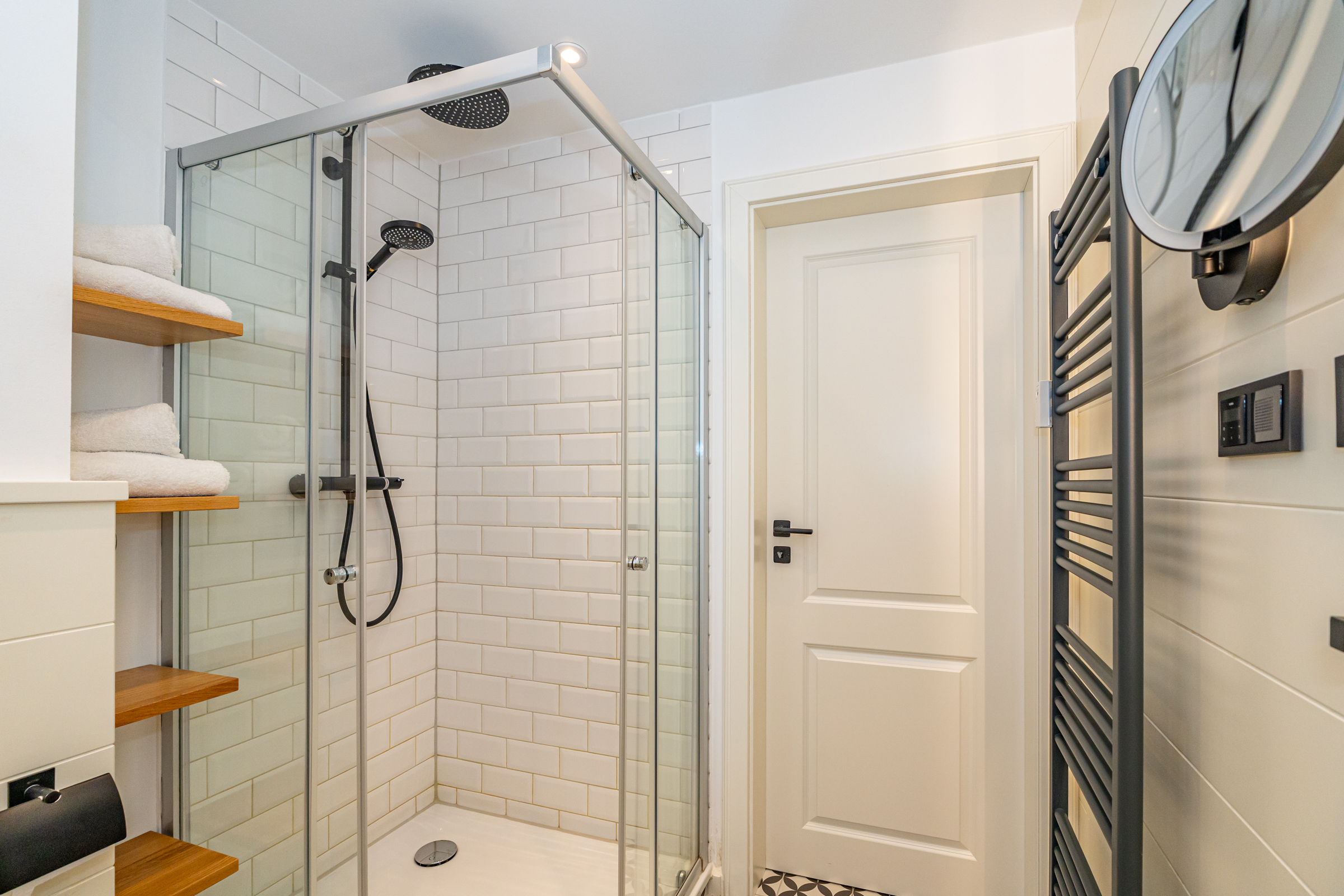 Das Badezimmer ist mit einer Dusche ausgestattet. Alle Annehmlichkeiten wie Handtücher, ein Haartrockner und ein Kosmetikspiegel sind ebenfalls vorhanden. Für Ihr Wohlbefinden sorgt eine Fußbodenheizung, die auch an kühleren Tagen eine angenehme Wärme gewährleistet.