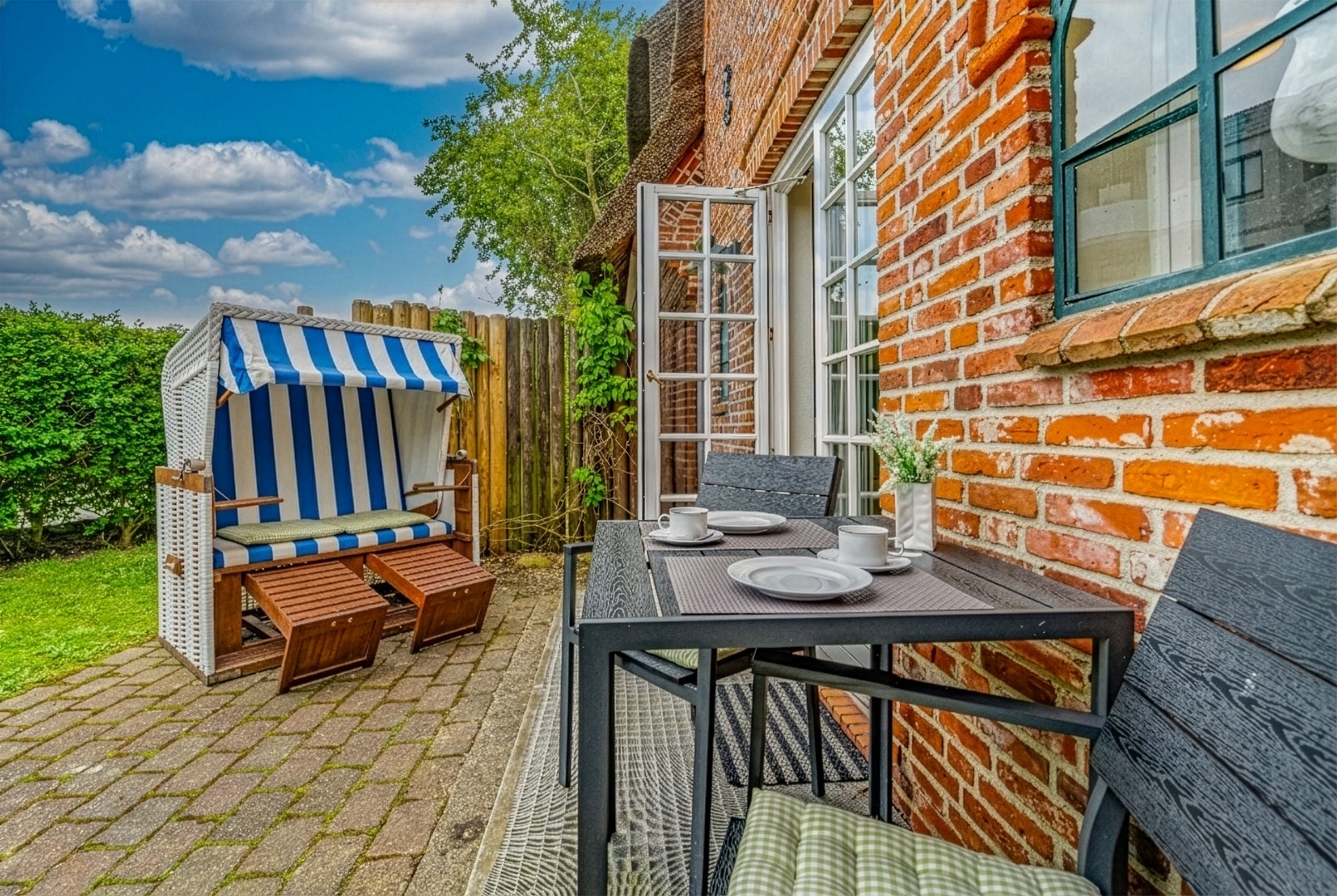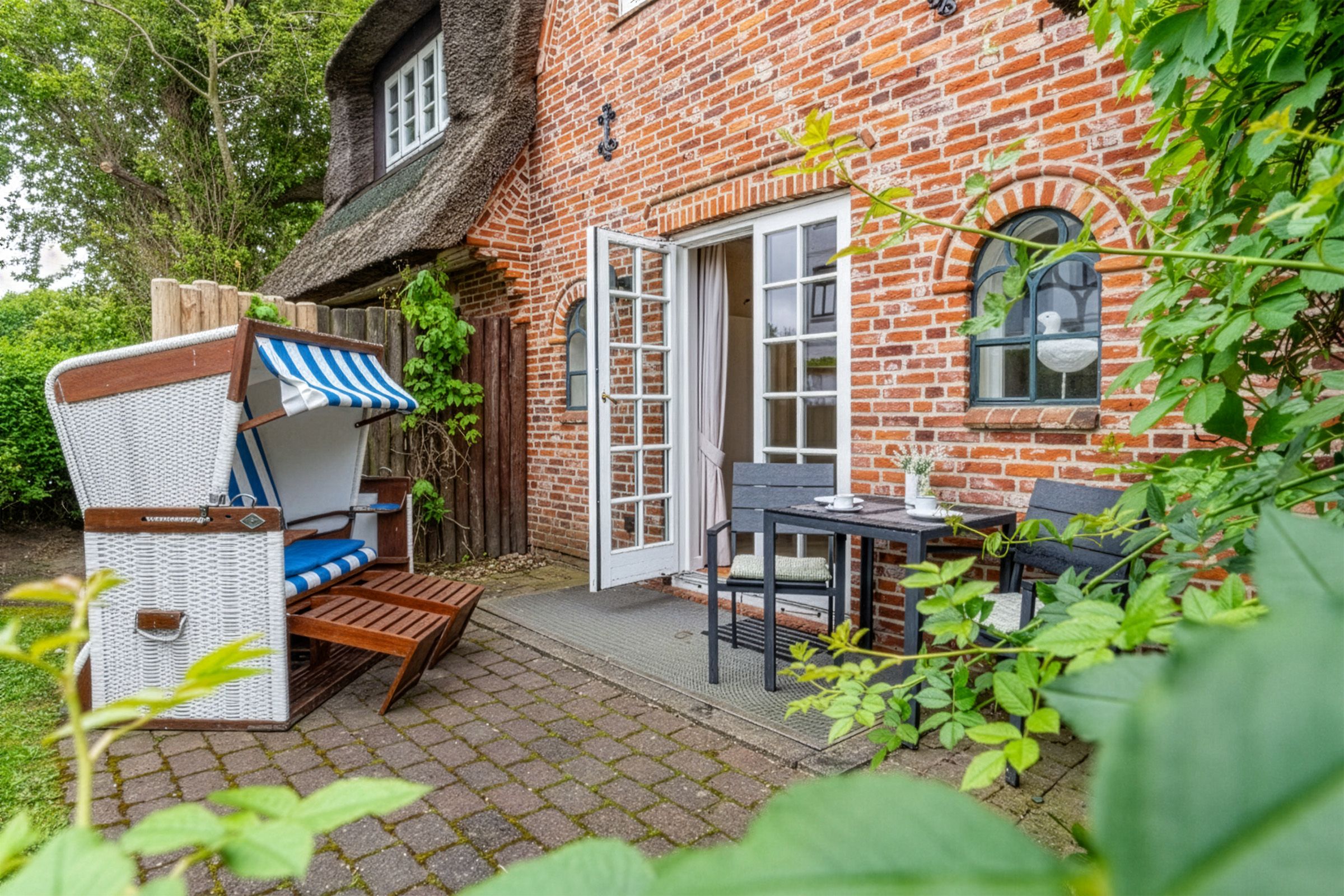 Vollständige BeschreibungDiese komfortable, neu sanierte Ferienwohnung unter Reet, ist zentral in Westerland gelegen und befindet sich im bekannten Altstadttor. Die Ferienwohnung erstreckt sich über zwei Ebenen. Im Erdgeschoss befindet sich der Wohn- und Essbereich, ausgestattet mit TV, einem gemütlichen Sofa und einem Essplatz. Die offene Küche lässt keine Wünsche offen: Backofen, Cerankochfeld, Mikrowelle, Spülmaschine, Nespresso Maschine, Toaster, Wasserkocher und Kühlschrank gehören zur Ausstattung. Vom Wohn- und Essbereich haben Sie Zutritt zur Terrasse mit Gartenmöbeln und typischen Sylter Strandkorb (saisonal). Über eine Treppe gelangen Sie ins Souterrain, dort befindet sich ein geräumiges Schlafzimmer mit komfortablem Doppelbett und Kleiderschrank. Ebenfalls auf dieser Ebene befindet sich das Badezimmer mit bodengleicher Dusche, Waschbecken und WC. In der Ferienwohnung befindet sich ein Waschtrockner zur Eigennutzung. Am Haus steht Ihnen ein PKW Stellplatz kostenfrei zur Verfügung.