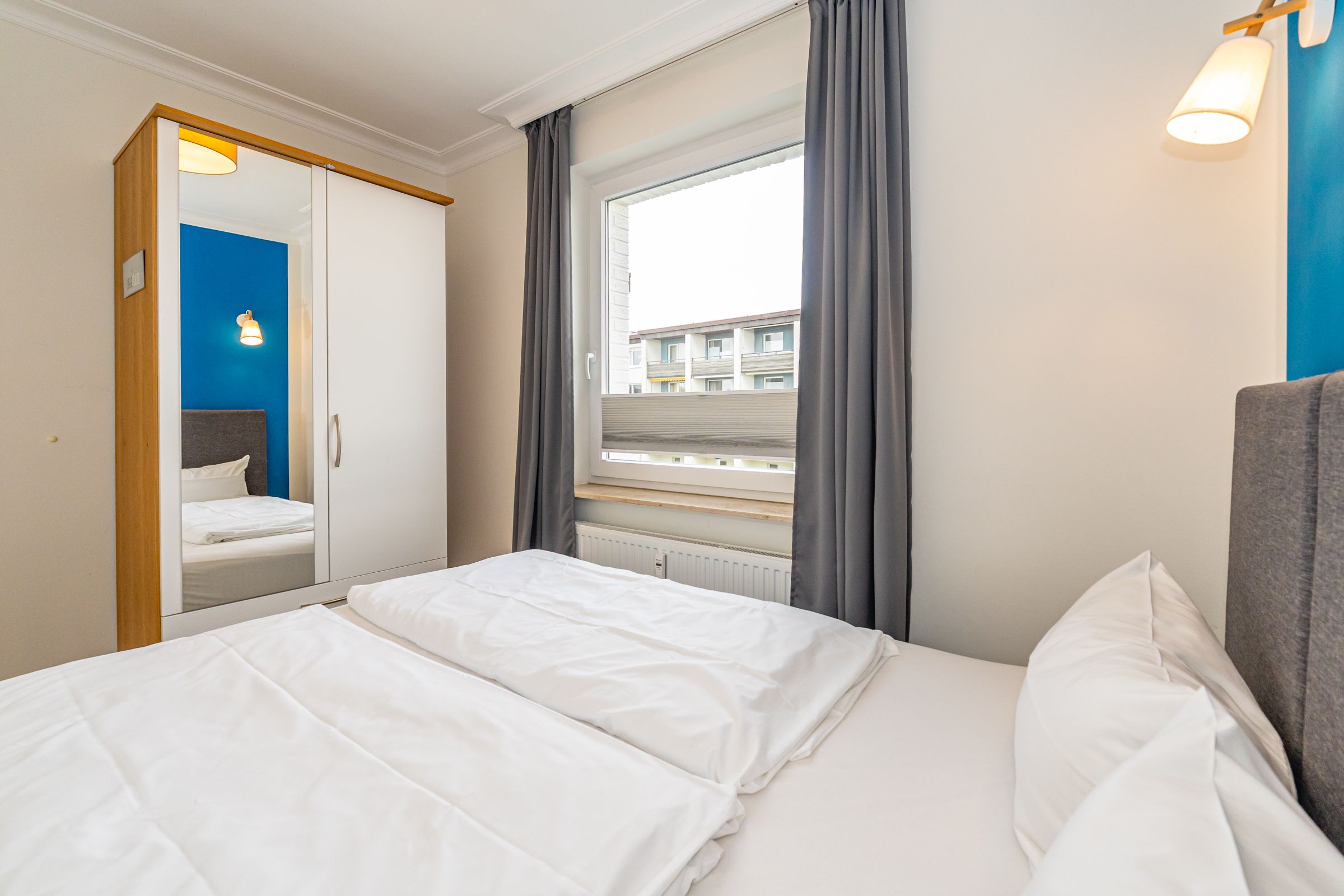 Diese gemütliche Ferienwohnung bietet Platz für bis zu vier Personen und überzeugt mit einer voll ausgestatteten Kochnische, einem modernen Wohnzimmer und zwei Schlafzimmern. Ebenso verfügt die Ferienwohnung über einen Balkon und ein PKW Stellplatz.