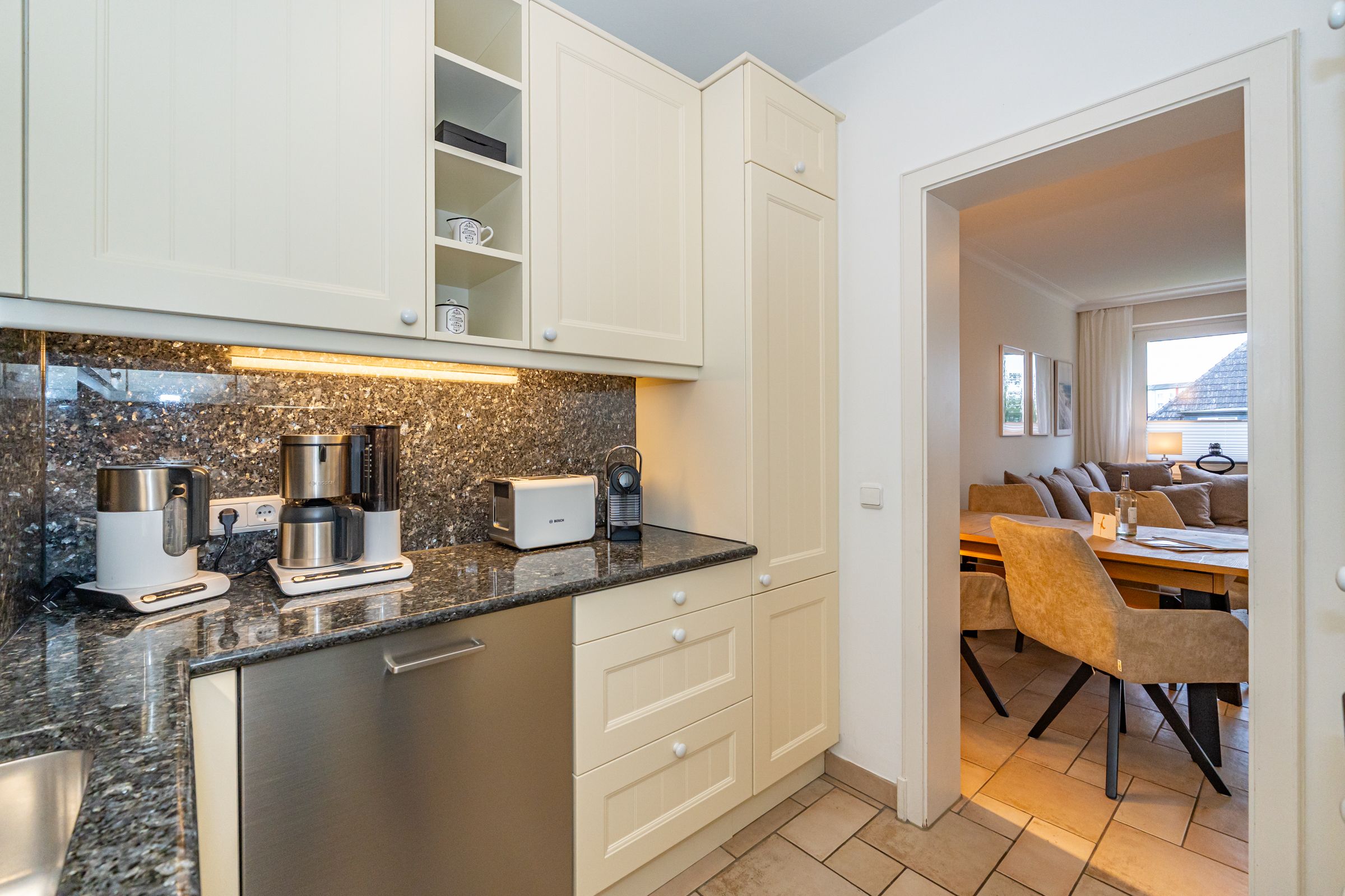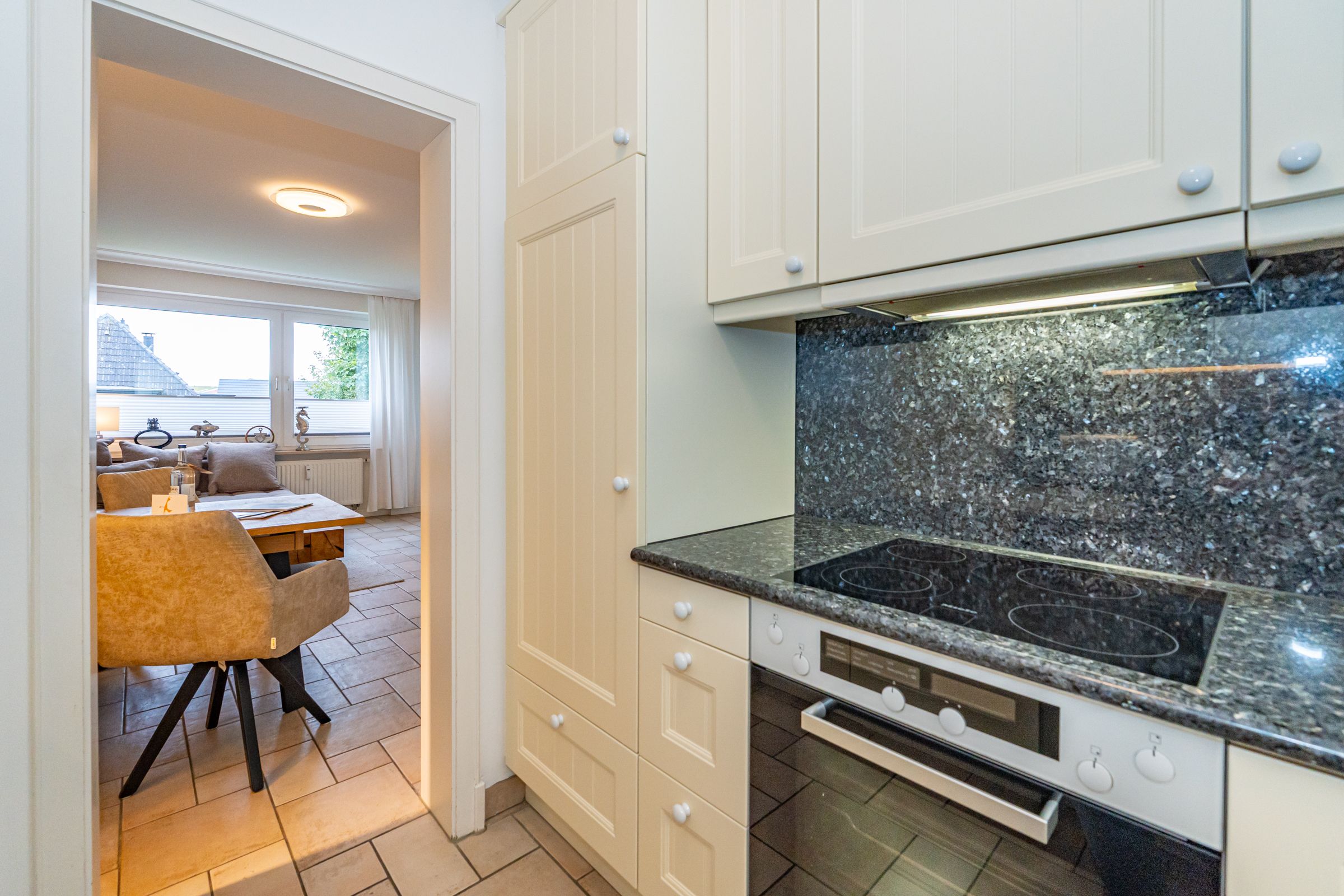 Vollständige BeschreibungRuhig gelegene 3- Zimmer-Ferienwohnung (55 m²) in Alt-Westerland "Ferienliebe Westerland" mit Südbalkon. Über eine offene Wendeltreppe gelangen Sie ins 1. OG wo sich die Ferienwohnung befindet. Von einem Flur aus erreichen Sie das helle, moderne Wohn- / Esszimmer mit direktem Zugang zum Südbalkon mit Gartenmöbeln, auf dem Sie bis in den späten Abend die Sonne genießen können. An diesen Bereich grenzt die separate, voll ausgestattete Küche mit Geschirrspüler, Cerankochfeld, Backofen, Kühlschrank und Nespresso Maschine und Filterkaffeemaschine. Zwei Schlafzimmer mit Boxspringbetten und genügend Stauraum für Ihre Garderobe, sowie das Duschbad erreichen Sie ebenfalls direkt vom Flur aus. Die Ferienwohnung "Ferienliebe Westerland" ist ein Nichtraucherdomizil, in dem kleine, gut erzogene Hunde erlaubt sind nach vorheriger Anmeldung (10,- € pro Tier/Tag). Der dazugehörige Parkplatz befindet sich direkt vor dem Haus.
