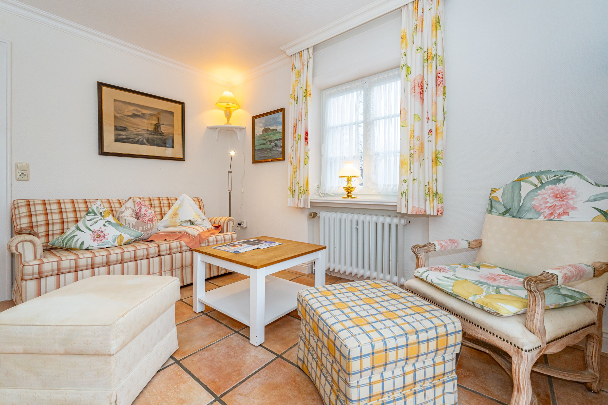 Vollständige BeschreibungDiese gemütliche 2-Zimmer-Ferienwohnung liegt im Herzen von Keitum. Vom Flur der ebenerdigen Ferienwohnung "Kajüte" haben Sie Zutritt zu allen Räumen. Die Küche verfügt über einen Essplatz, Backofen, Geschirrspüler, Kühlschrank mit Gefrierfach und Nespressokapselmaschine. Im hellen Wohnbereich erwartet Sie ein Sofa und TV. Von hier aus haben Sie Zugang zu Ihre eigenen Terrasse im Gemeinschaftsgarten des 3 Parteien Hauses. Im Schlafzimmer erwartet Sie ein Doppelbett und ein Kleiderschrank. Das Badezimmer ist ausgestattet mit einer bodengleiche Dusche und WC und hat ein Fenster. Ein PKW Stellplatz steht Ihnen am Haus zur Verfügung.