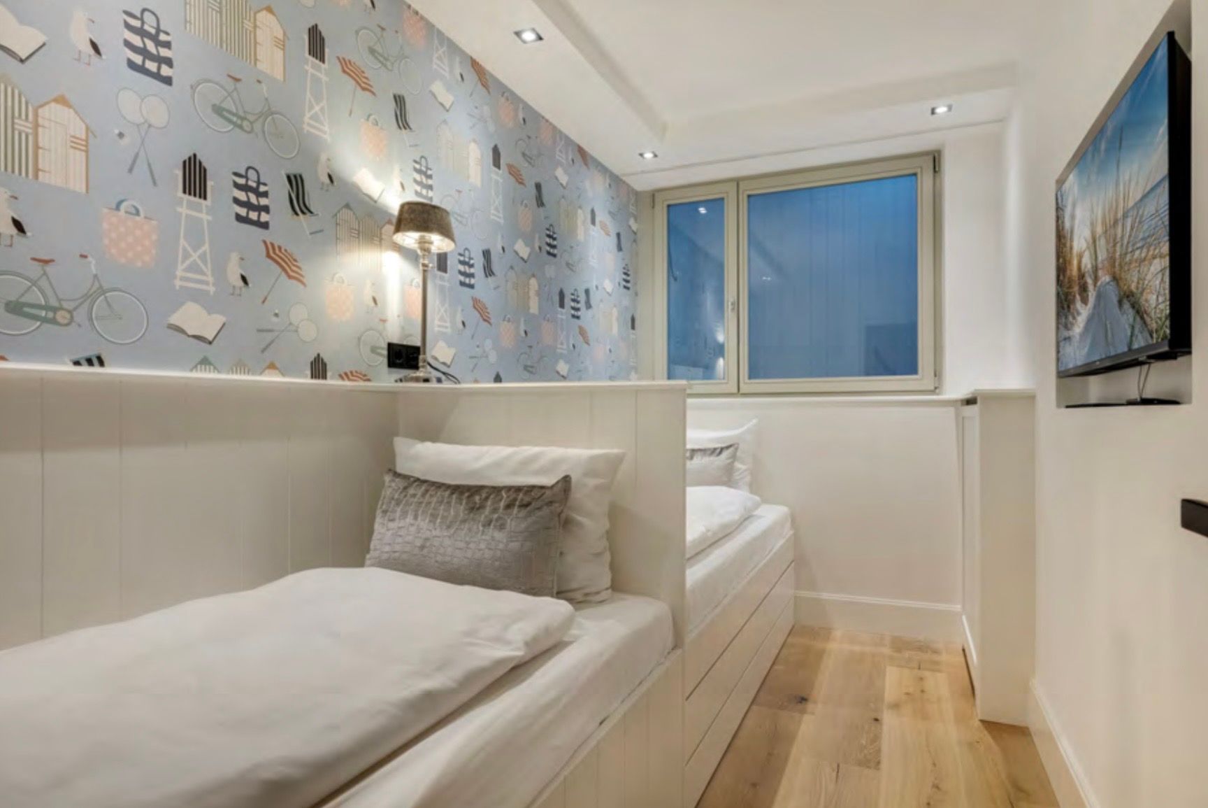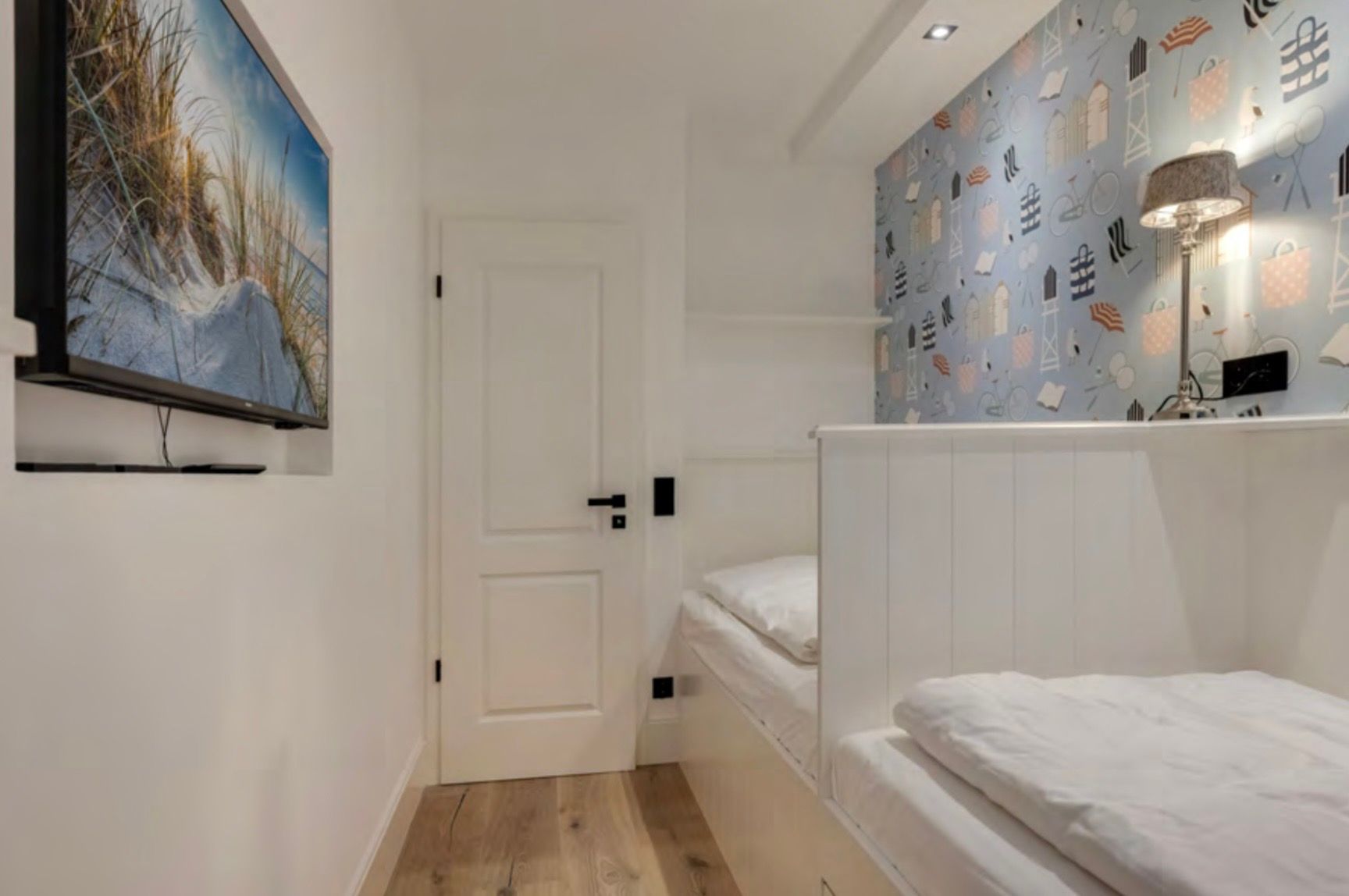 Kampen Royal bietet auf 76 m² Platz für bis zu fünf Personen und überzeugt durch eine moderne Ausstattung, darunter eine offene Küche, WLAN, TV, eine Sauna und einen Indoor-Pool zur gemeinschaftlichen Nutzung. Die Ferienwohnung befindet sich in direkter Strandnähe mit Meerblick von der Terrasse aus.