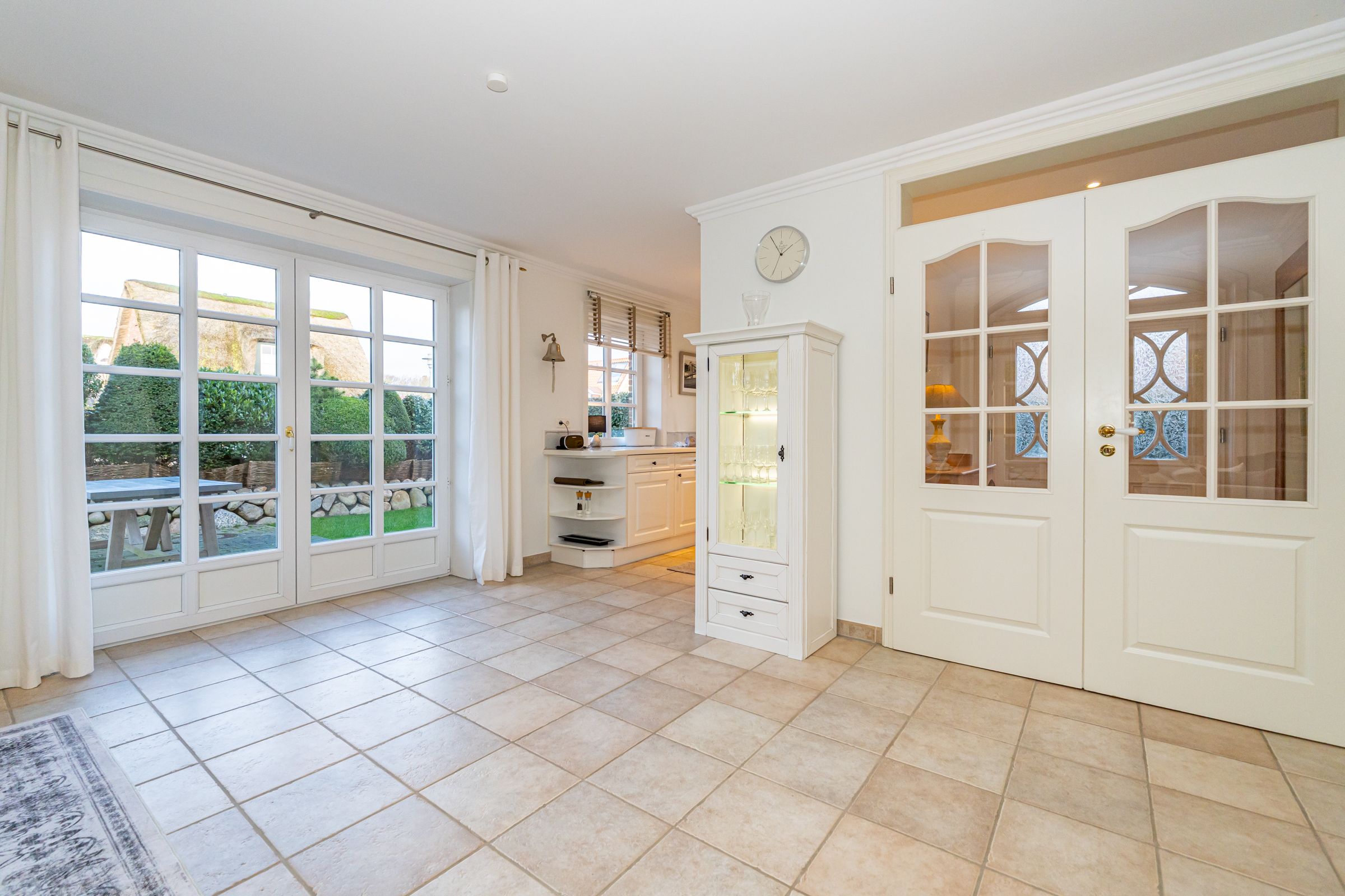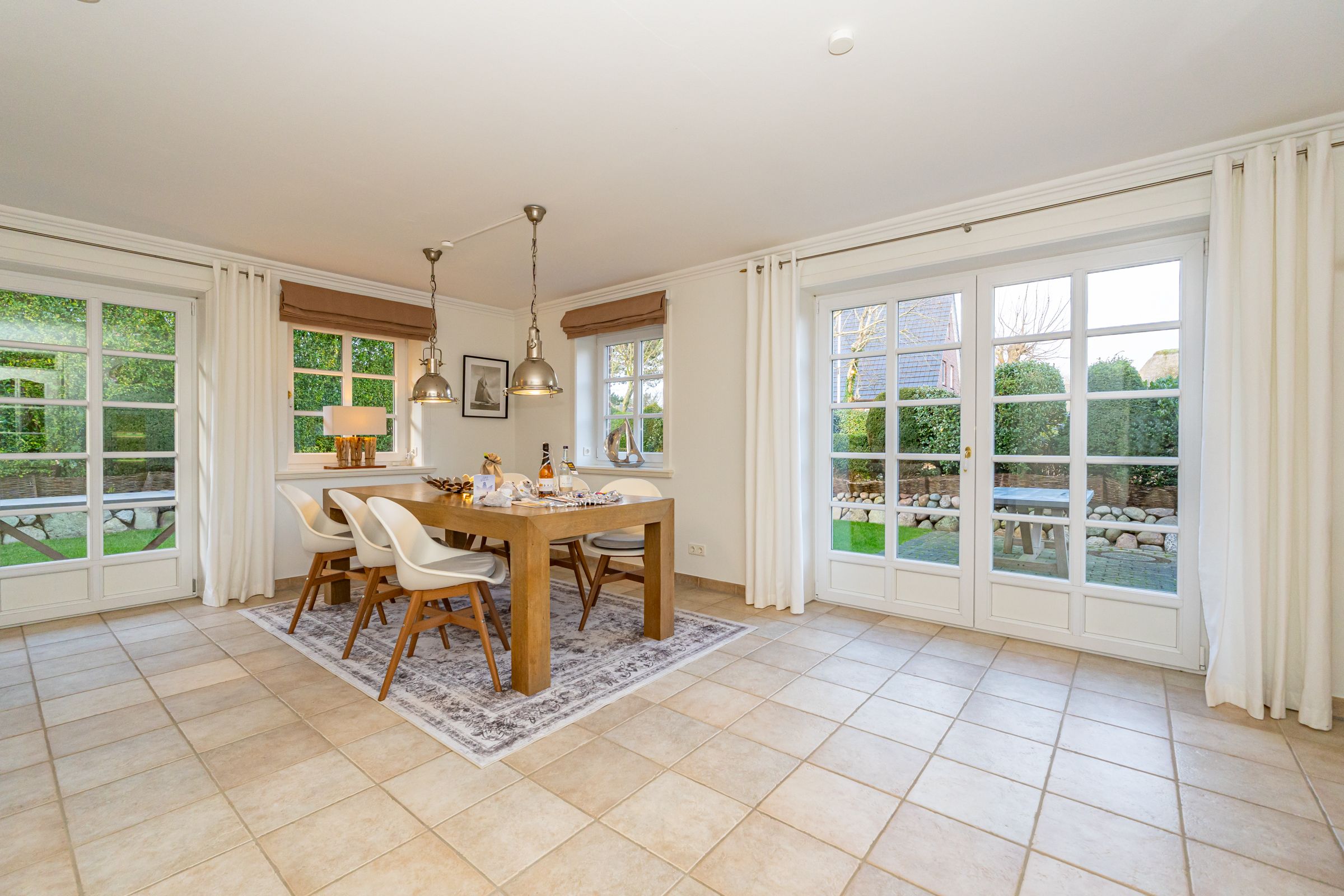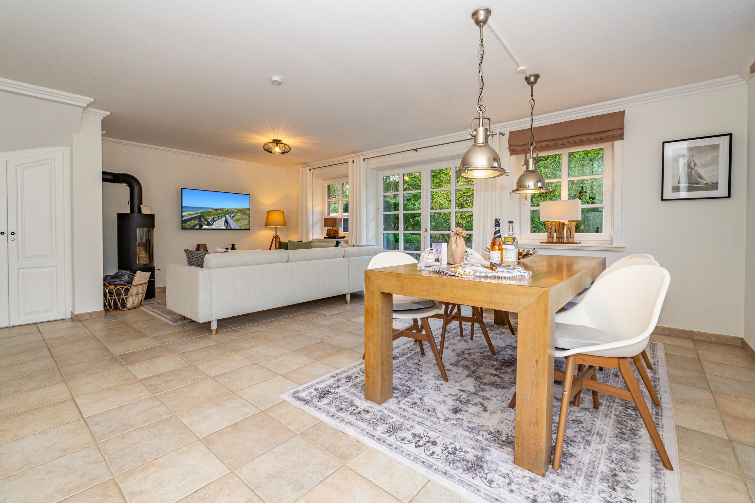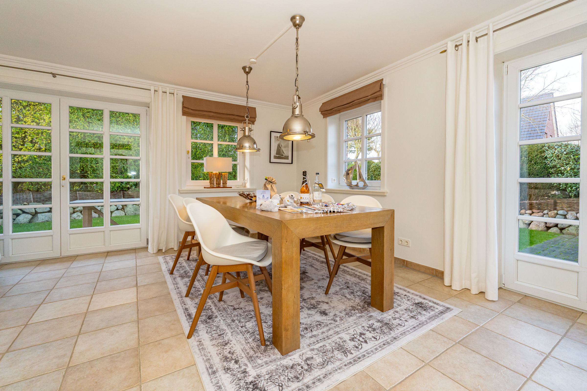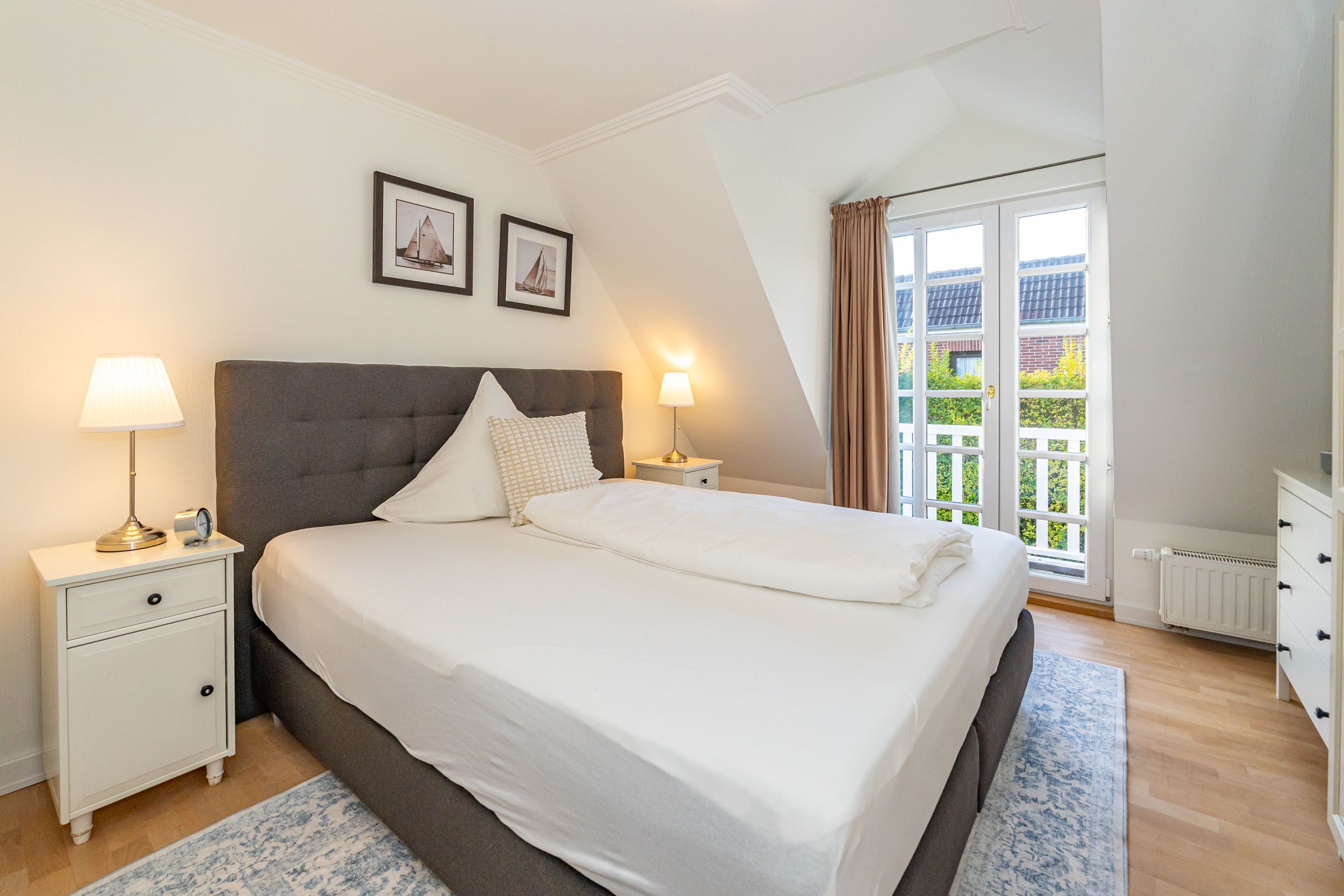 Vollständige BeschreibungSie möchten nahe zum Meer wohnen, kurze Wege zu Gastronomie, Bäckereien, sowie zur Westerländer Innenstadt haben? Dann sind Sie im Lerchennest genau richtig. Die beiden Schlafzimmer (OG) sind mit je einem Boxspringbett (180 cm x 200 cm), LED TV sowie Radio ausgestattet und haben beide je einen kleinen Balkon mit einer Sitzmöglichkeit, um z.B. in den Abendstunden den Sonnenuntergang bei einem Glas Wein genießen zu können. Im Obergeschoss befinden sich zwei Badezimmer, eines davon mit Dusche und eines davon mit Badewanne. Das dritte Schlafzimmer ist im Dachgeschoss, wo ein friesisches Kojenbett auf Sie wartet. Zudem lässt die lichtdurchflutete, perfekt ausgestattete Küche im Erdgeschoss die Herzen der "Kochprofis" höher schlagen und rundet dieses Domizil ab. Des weiteren verfügt das "Lerchennest" über Fußbodenheizung (EG & Bäder) Kaminofen im WZ und WLAN-DSL Internetzugang. Im Erdgeschoss befindet sich zusätzlich ein Gäste WC. Vom Wohn- sowie auch Essbereich haben Sie die Möglichkeit auf je eine großzügige Terrasse in den neu gestalteten, vollständig mit Friesenwall umrandeten und uneinsichtigen Garten zu treten. Der Garten lädt zum Entspannen und Genießen auf DeckChairs, im Strandkorb sowie einem guten Essen auf den möblierten Terrassen ein. Ihre Fahrräder können Sie bequem in der abschließbaren Gartenlaube unterstellen. Ein guterzogener Hund ist nach vorheriger Anmeldung erlaubt (10,- € pro Tier/Tag).Weniger lesen