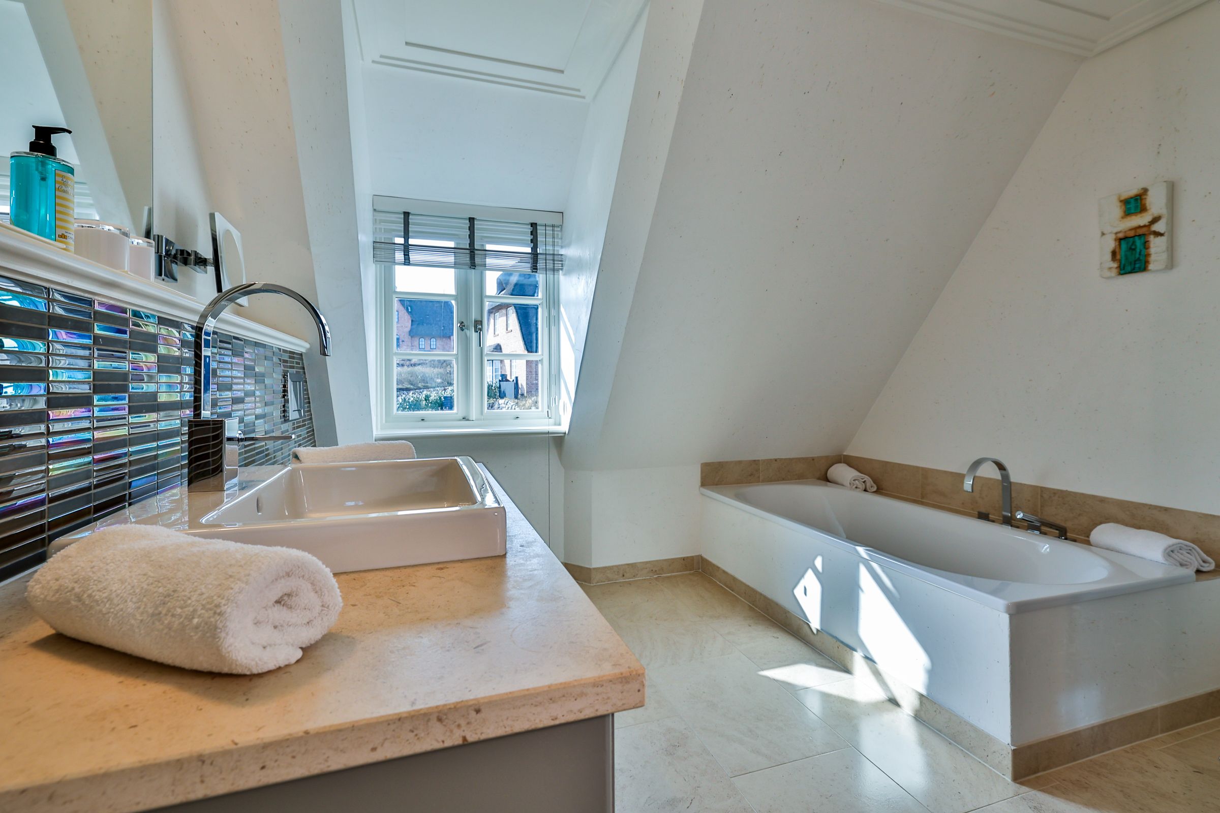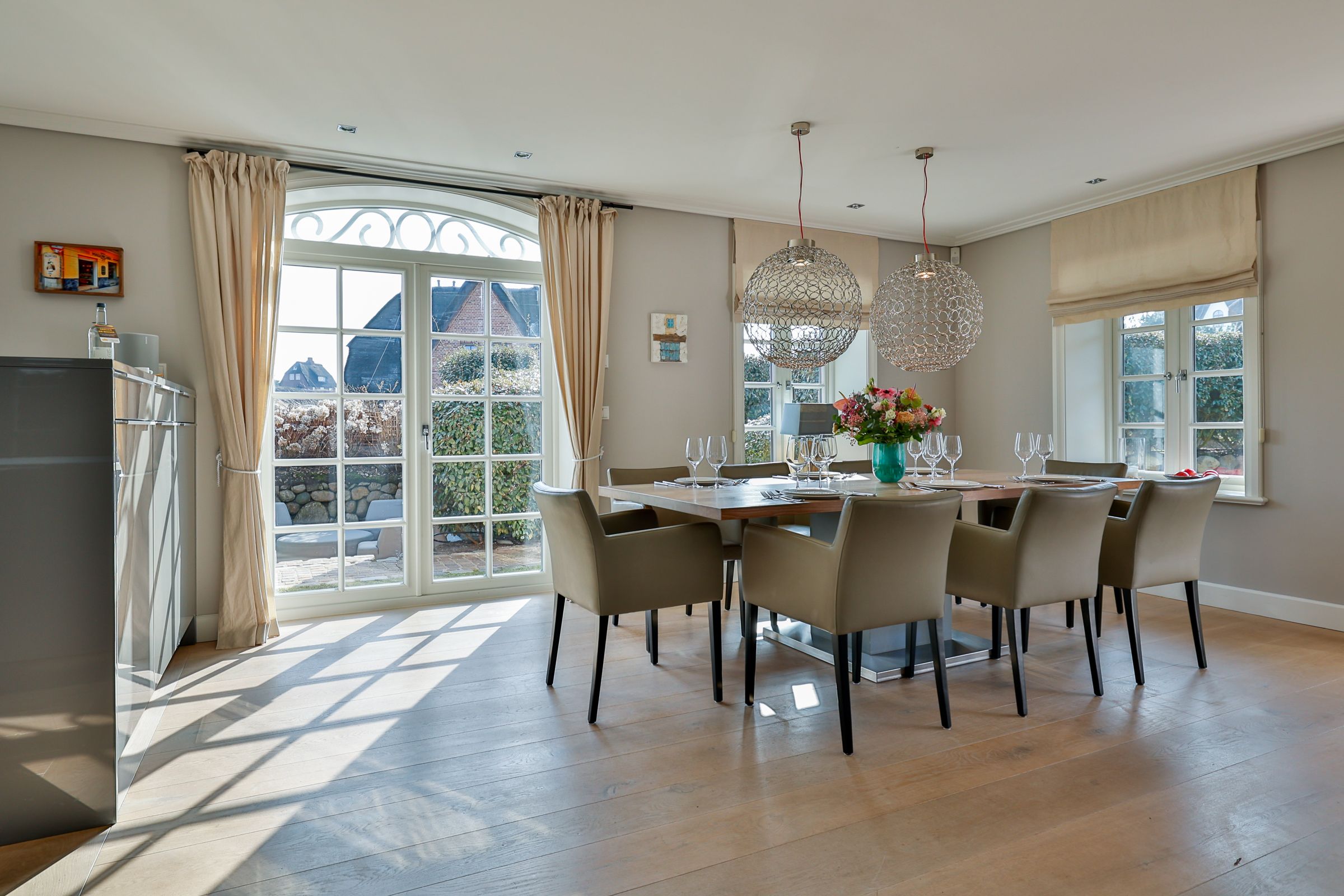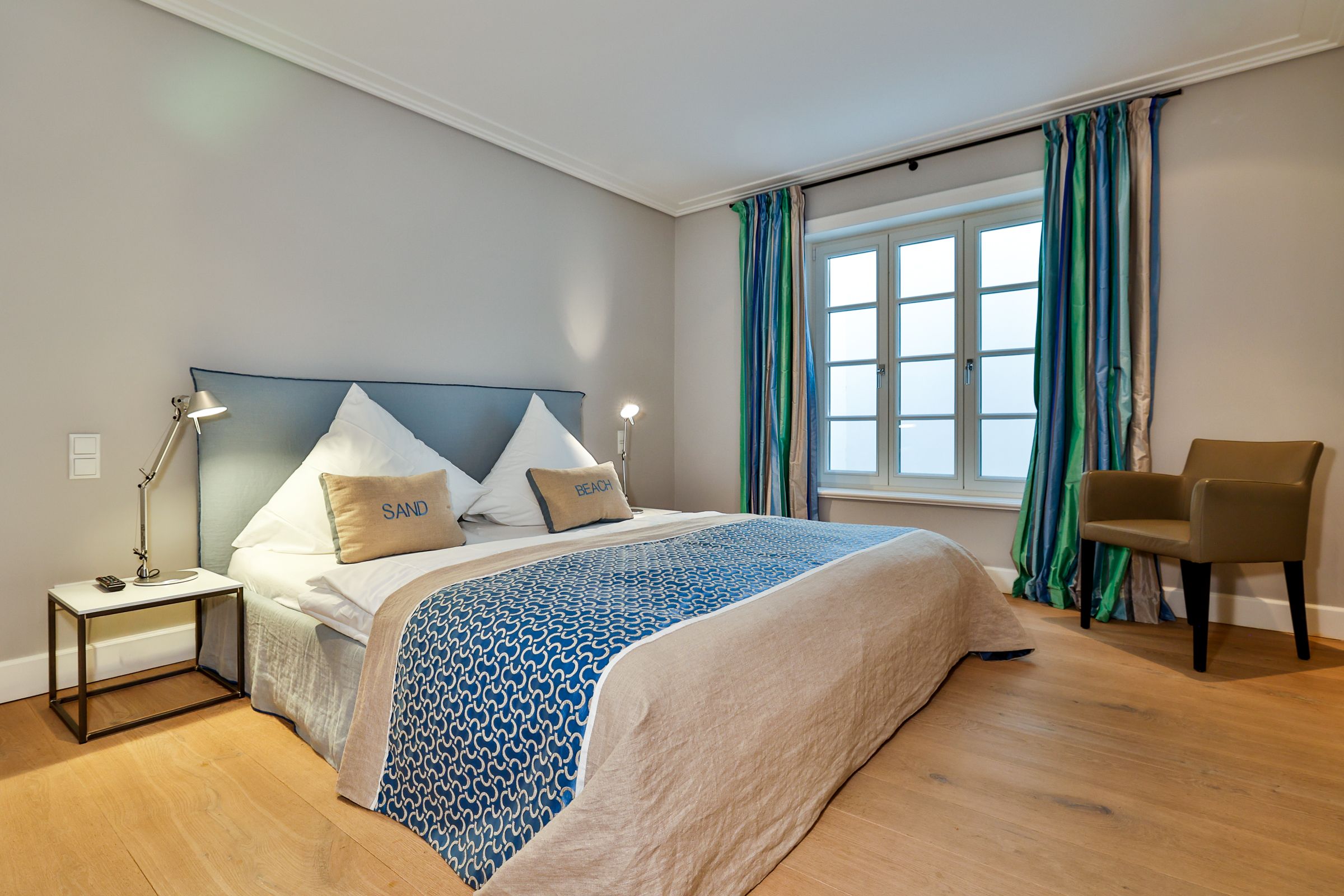 Das Sand Beach in Rantum bietet auf 175 m² viel Raum für bis zu 8 Gäste. Das stilvolle Ferienhaus mit 4 Schlafzimmern verfügt über ein Wohnzimmer mit offener Küche, Sauna, Kamin, 3 bodengleiche Duschen und 1 Badewanne. Terrasse, Garten mit Gartenmöbeln und Strandkorb sorgen für entspannte Stunden. Der Sandstrand und das Meer sind nur 450 m entfernt, Restaurant und Ortskern liegen nahezu vor der Tür.