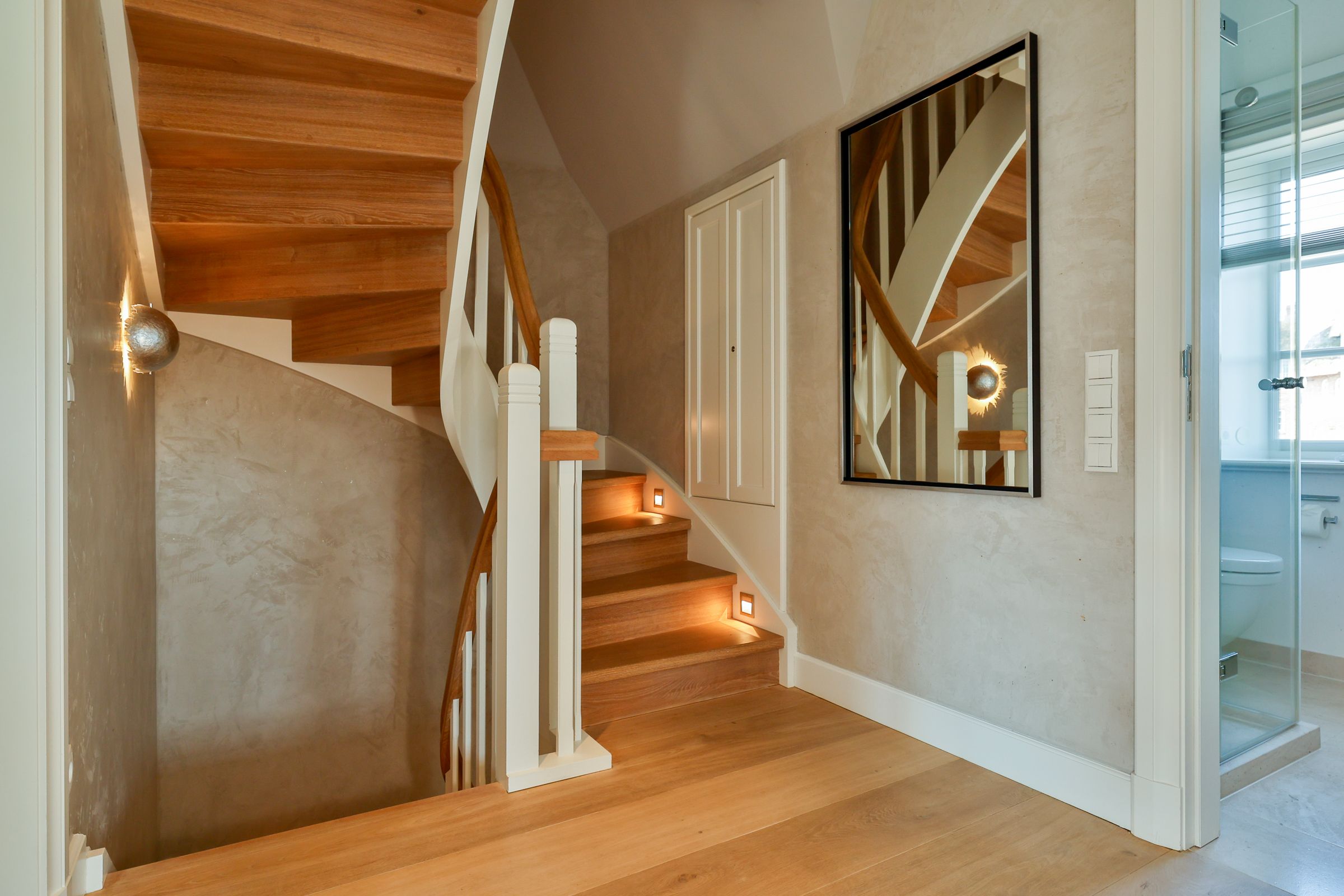 Über eine Treppe gelangen Sie in das erste Obergeschoss des Ferienhaus. Hier befinden sich zwei komfortable Schlafzimmer, die jeweils mit einem Doppelbett und Fernseher ausgestattet sind. Ebenfalls auf dieser Etage stehen Ihnen zwei moderne Badezimmer zur Verfügung. Eines der Bäder ist mit Dusche und Badewanne ausgestattet und bietet damit sowohl die Möglichkeit für eine schnelle Erfrischung als auch für ein entspanntes Bad. Das zweite Badezimmer verfügt über eine Dusche und sorgt so für zusätzliche Komfort, besonders wenn mehrere Gäste im Ferienhaus wohnen.