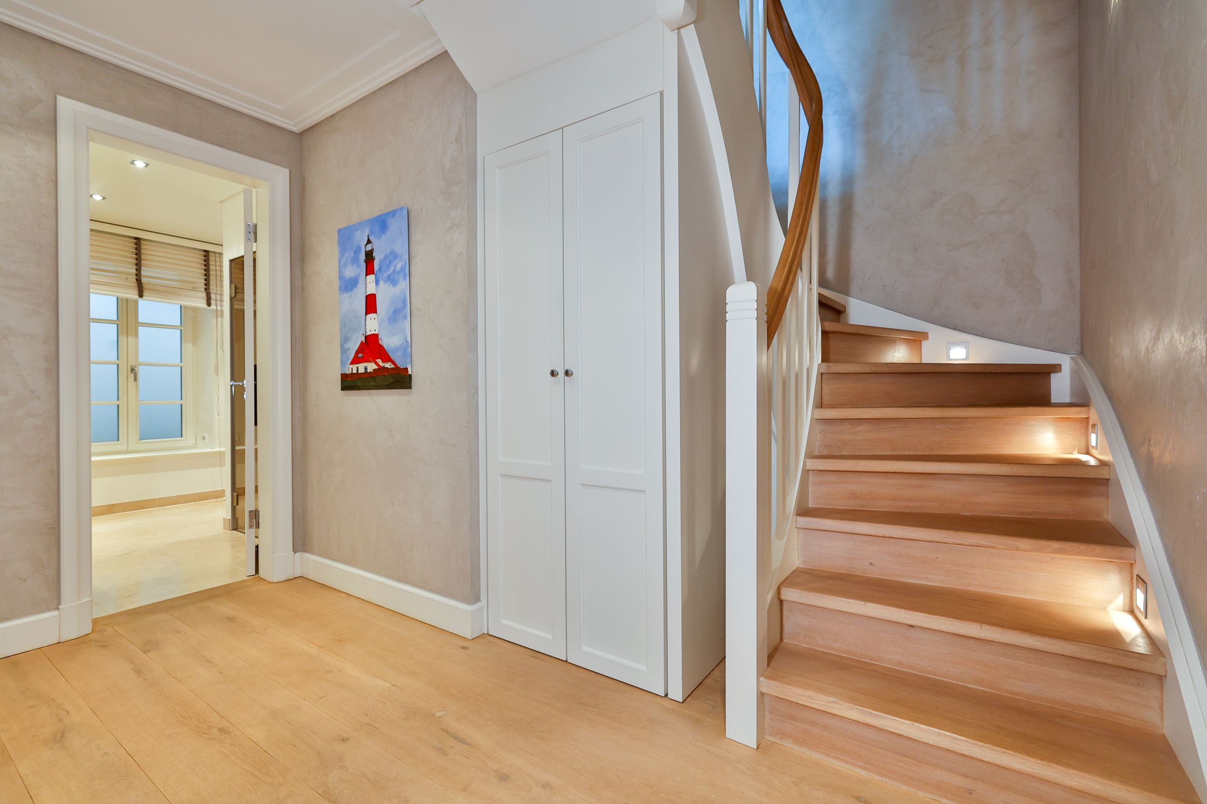 Im Untergeschoss des Ferienhauses befinden sich zwei weitere Schlafzimmer, die jeweils mit Doppelbett und Fernseher ausgestattet sind und somit ebenfalls komfortable Rückzugsorte für erholsame Nächte bieten. Darüber hinaus steht Ihnen auf dieser Ebene ein Badezimmer mit Dusche und Sauna zur Verfügung. - der perfekte Ort, um nach einem aktiven Urlaubstag zu entspannen. In einem weiteren separaten Raum befindet sich außerdem eine Waschmaschine und ein Trockner, die Ihnen während Ihres Aufenthalts zur Verfügung stehen.