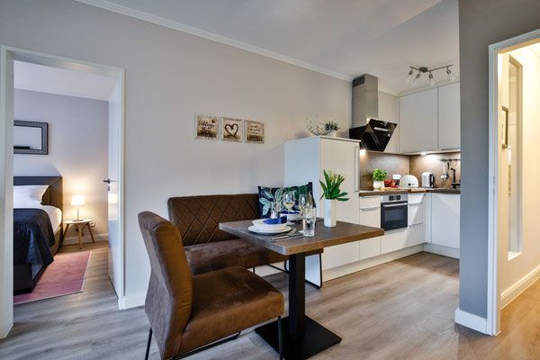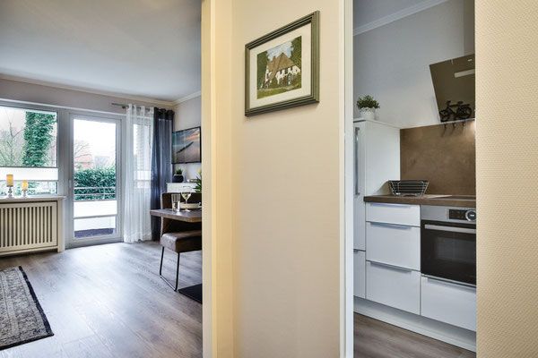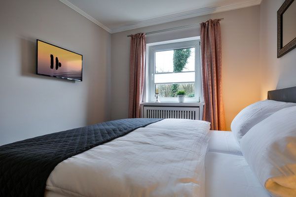 Vollständige BeschreibungDie zauberhafte Ferienwohnung Sünhair befindet sich in der Hochparterre (ebenerdig und über zwei flache Stufen zu erreichen) eines Appartementhauses in Westerlands Innenstadt und verbindet modernen Komfort mit einer besonders attraktiven Lage. Mit insgesamt zwei Zimmern, darunter ein separates Schlafzimmer und ein geräumiger Wohnbereich, bietet das Domizil Platz für bis zu zwei Personen. Der offen zum Wohnzimmer gestaltete Küchenbereich verfügt über einen Ceranherd, Backofen, Kühlschrank mit integriertem Gefrierfach, Spülmaschine, Wasserkocher, Toaster sowie eine Kaffeemaschine und sämtliche erforderlichen Küchenutensilien. Somit ist eine umfassende Selbstversorgung mühelos möglich.